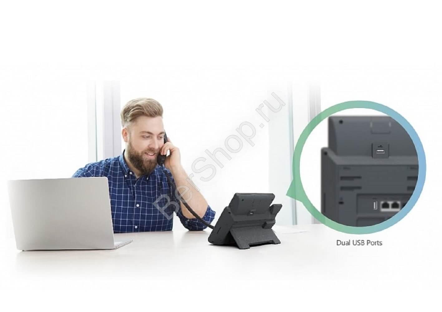 SIP-T48U оснащен семидюймовым цветным сенсорным дисплеем с подсветкой и разрешением 800 x 480 пикселей, что гарантирует пользователям улучшенные возможности навигации, а имея 2 USB порта, телефон T48U становится правой рукой в офисе.